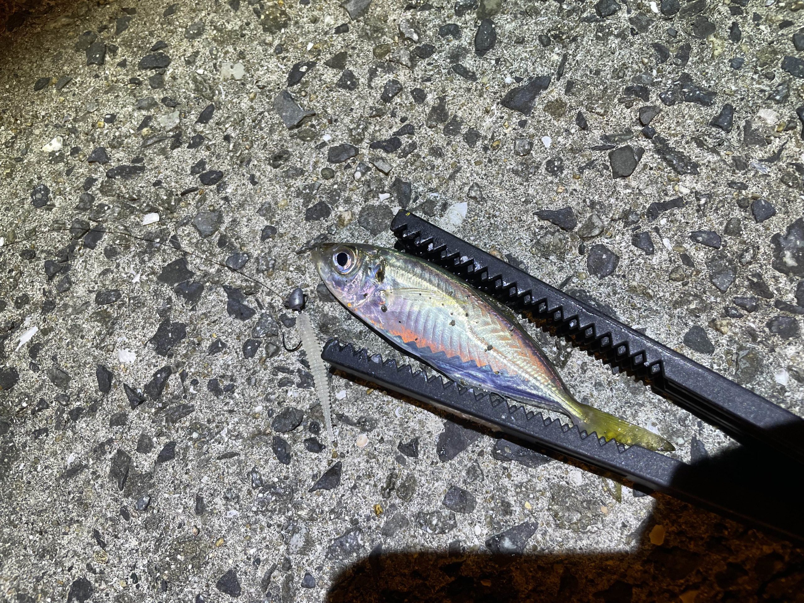 ベイト調査の為、アジングワームを投げると