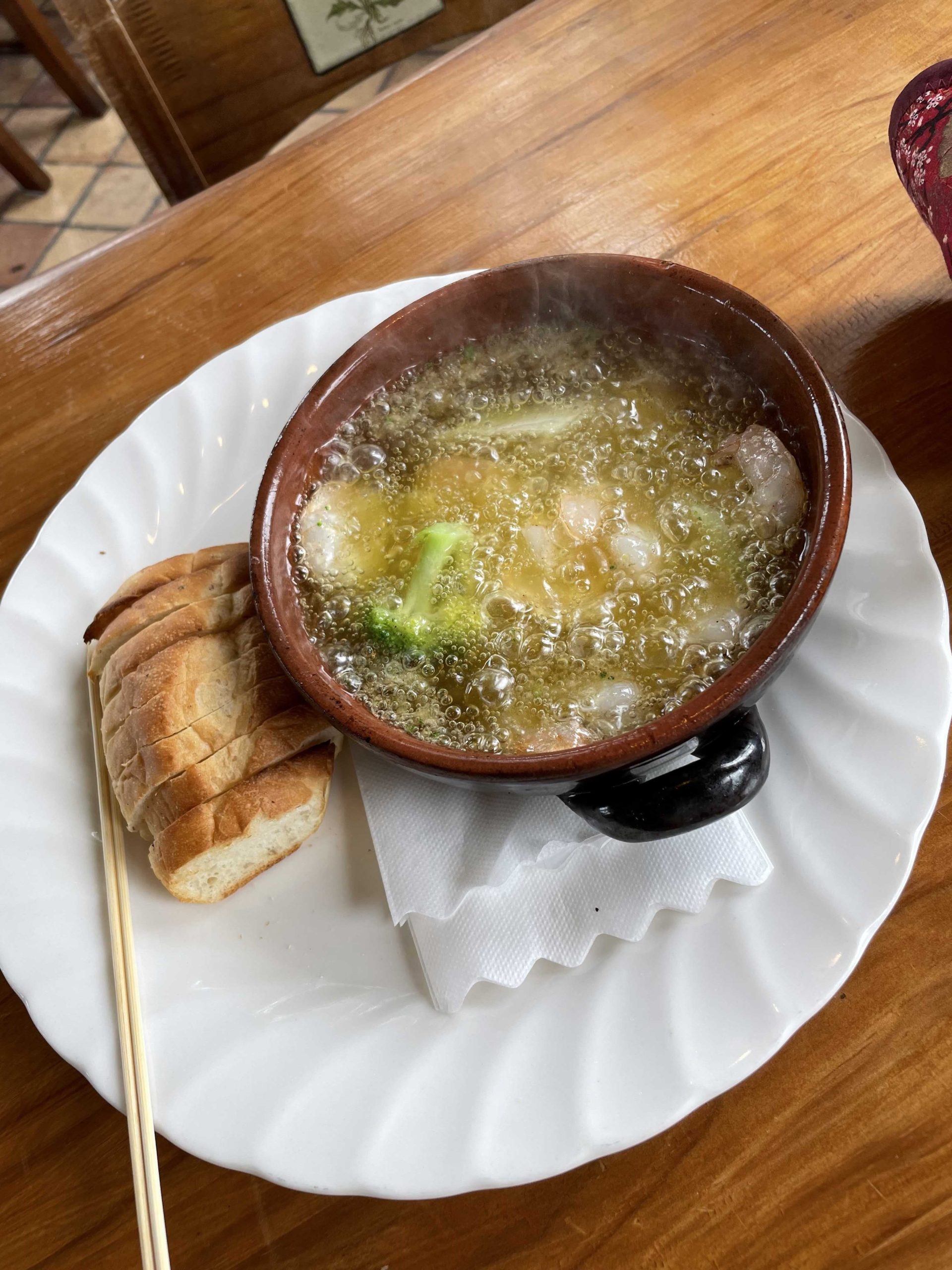 アヒージョ。ここのパン、結構おいしかったです。