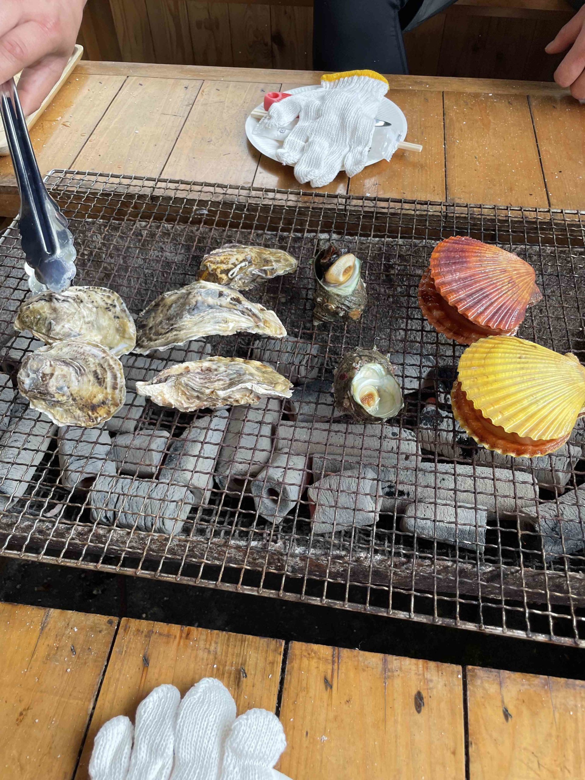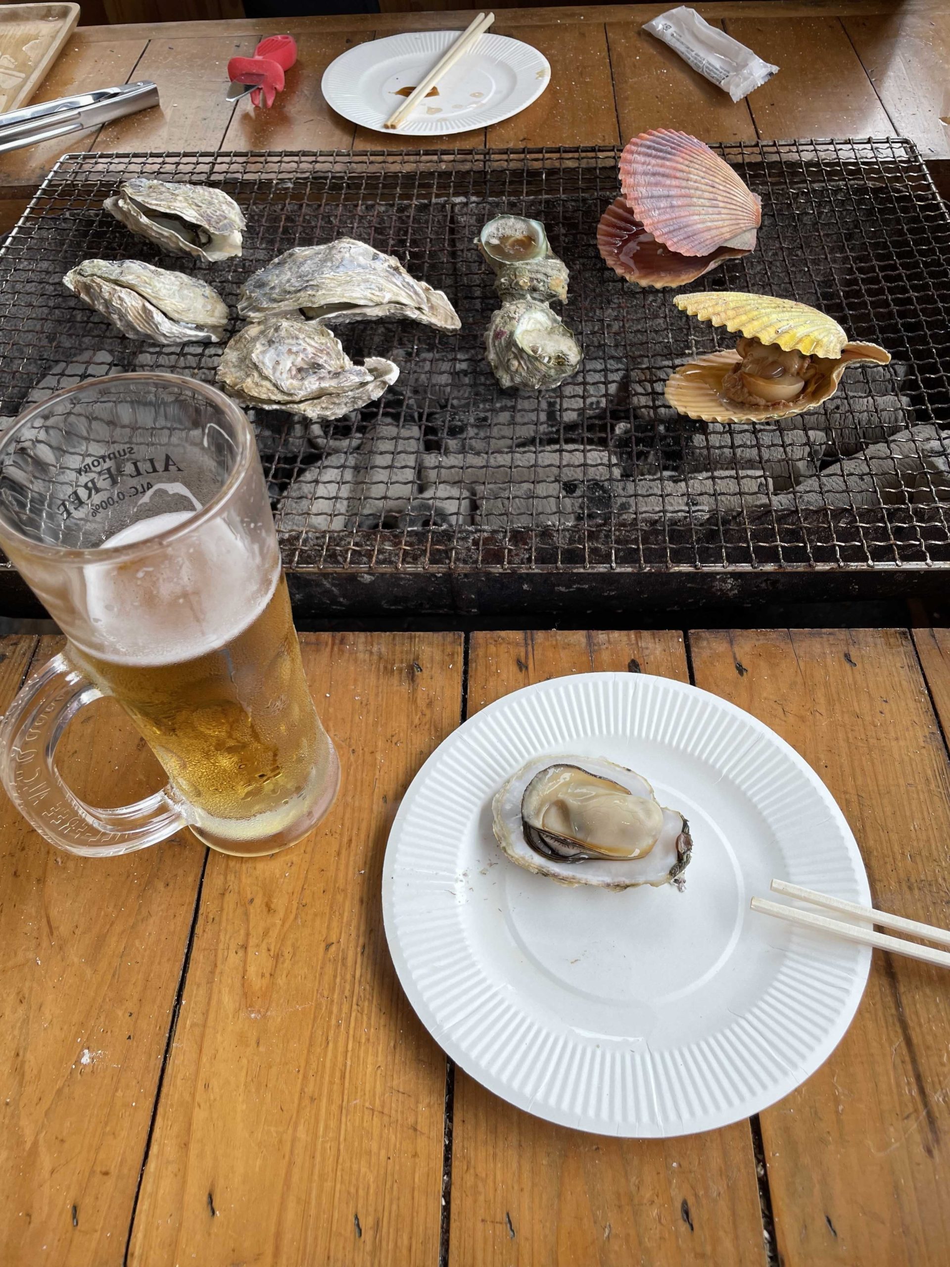 事前会計方式で、牡蠣やヒオウギ貝、アシアカエビを頼みます。