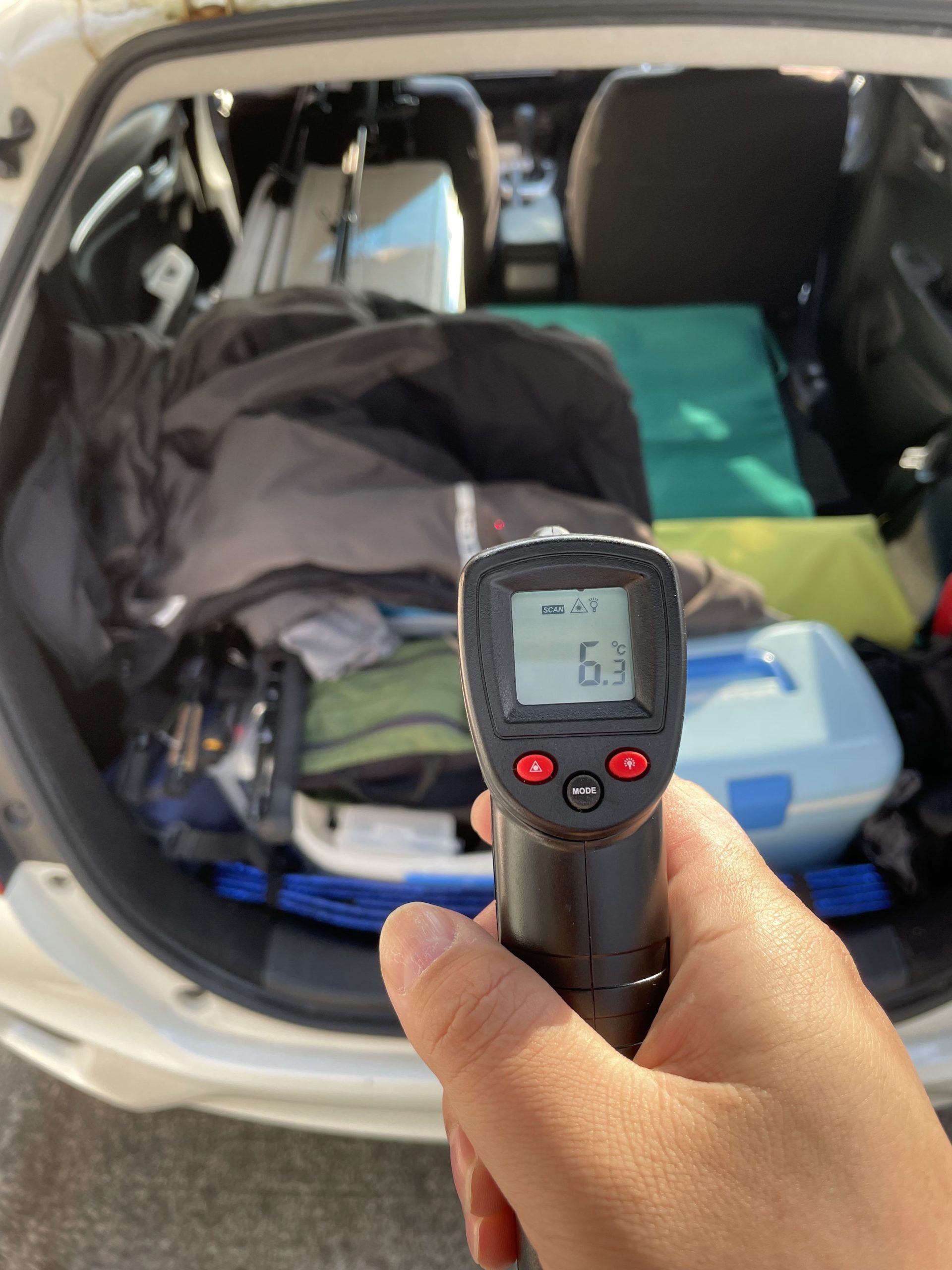 レーザー温度計を持って行きました。